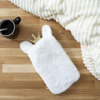 Bouillotte animal 1L - toucher doux - Lapin blanc avec couronne