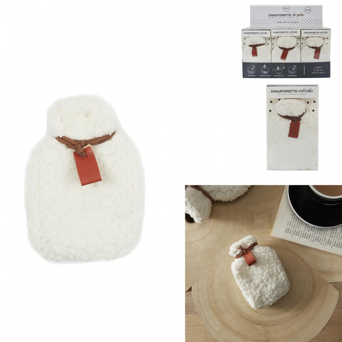 Testez cette chaufferette présentée avec style dans un habillage en sherpa et vos mains recouvreront douceur et confort !