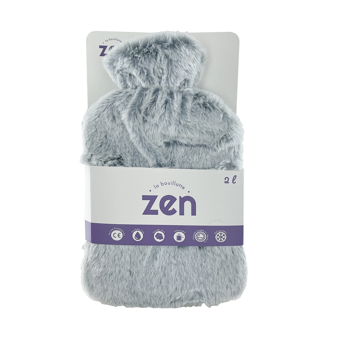 Bouillotte caoutchouc naturel 2L + revetement fourrure - gris