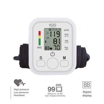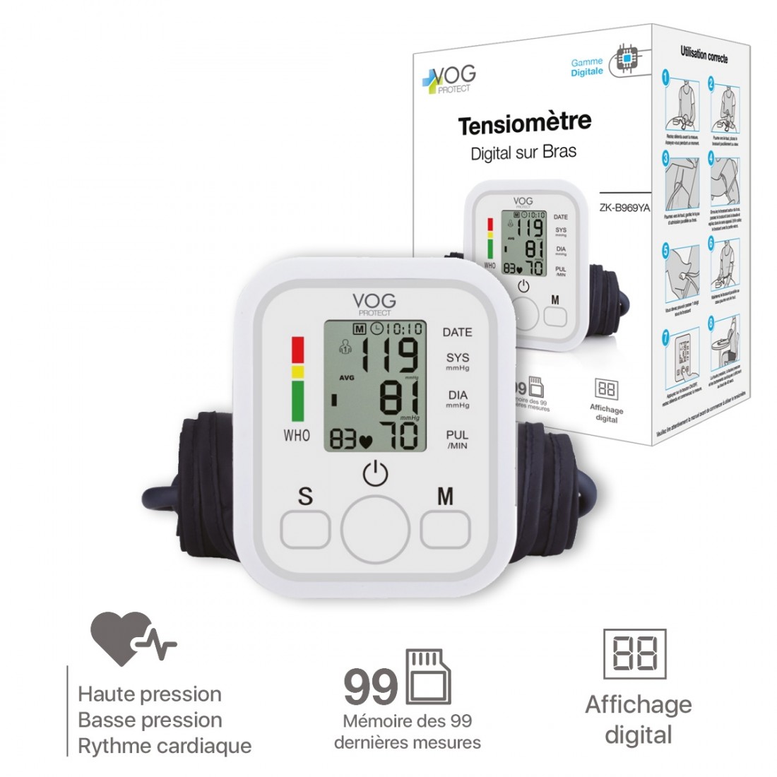 Le tensiomètre Vog Protect est un appareil médical qui permet de mesurer la pression sanguine et le pouls au niveau du bras. Cet appareil de mesure reprend les fonctions que doit disposer un tensiomètre au bras. La prise en main est classique et ergonomique pour faciliter la prise de mesure.