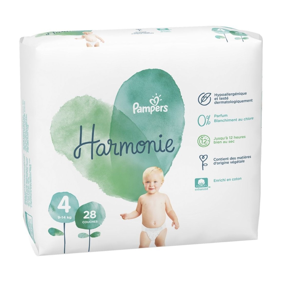 Conçues sans lotion, parfum, et sans les 26 allergènes listés par l’U.E, les couches Pampers Harmonie sont hypoallergéniques (conçues pour minimiser le risque d’allergies), testées dermatologiquement et certifiées par le label indépendant STANDARD 100 d’Oeko-Tex.