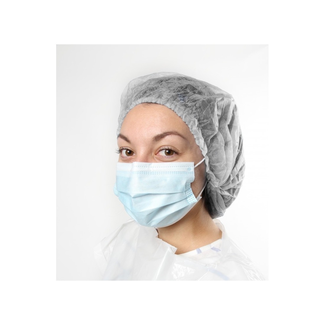 Charlotte avec élastique de serrage. Cette charlotte est utilisée dans une multitude d'environnements de travail, tels que l'alimentaire, les laboratoires.