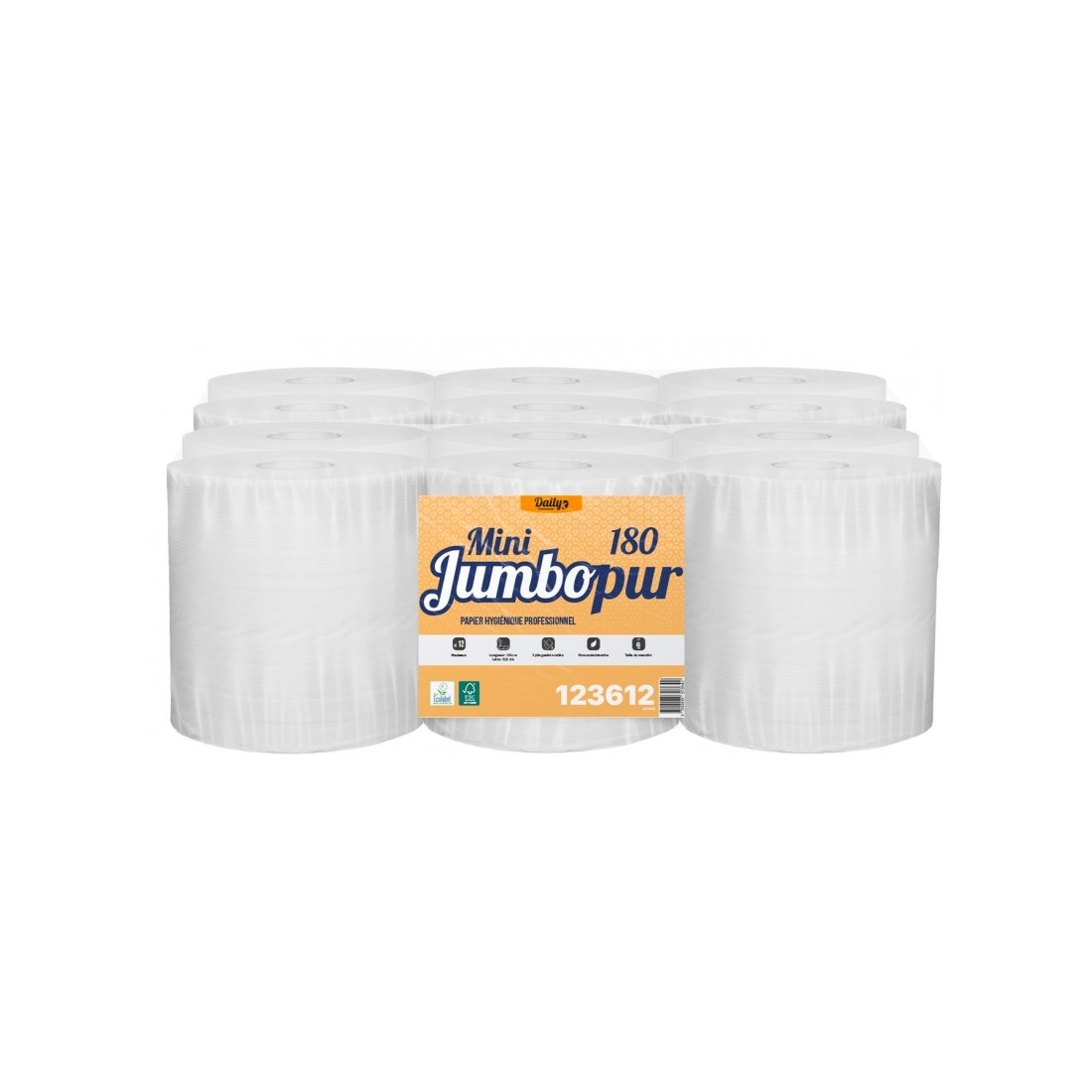 Le papier mini Jumbopur blanc est un produit haut de gamme fabriqué en pure ouate blanche double épaisseur pour vous offrir une meilleure absorption.