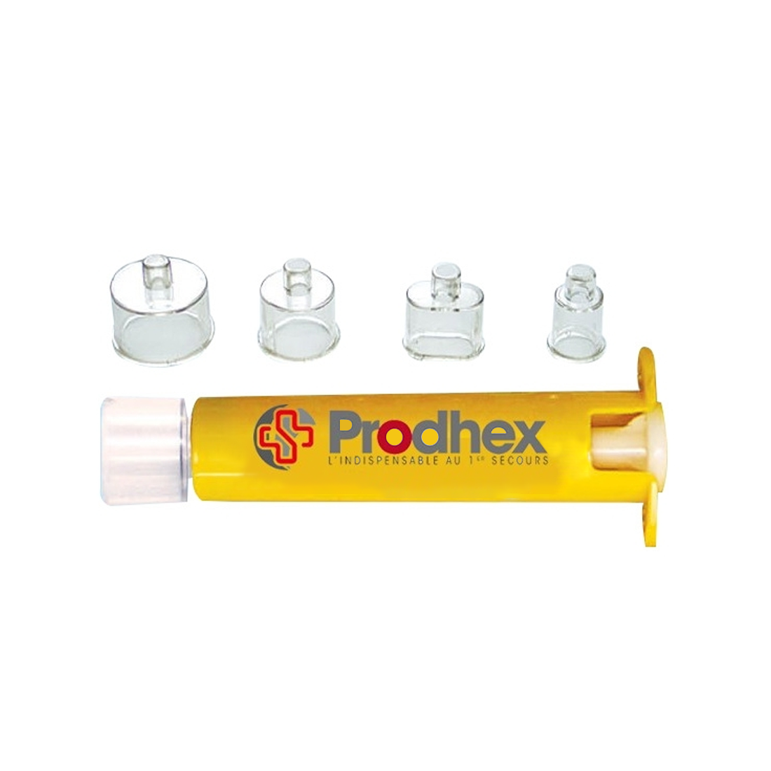 Pompe à venin permettant de soulager la douleur occasionnée par la morsure ou la piqûre d'un animal venimeux.