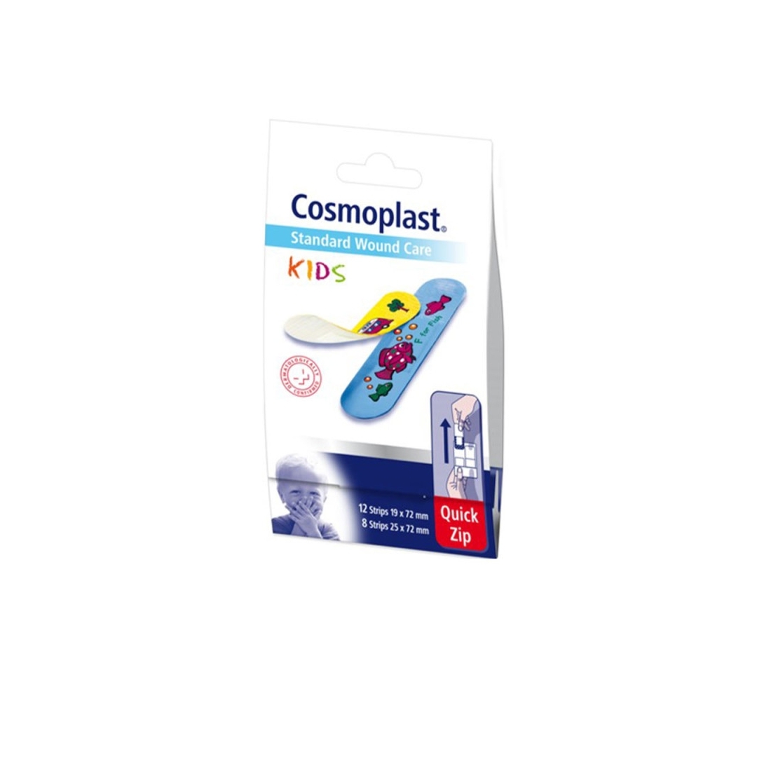 Pansements COSMOPLAST à ouverture rapide pour enfants. Pansement avec motifs pour enfants . Testé dermatologiquement.