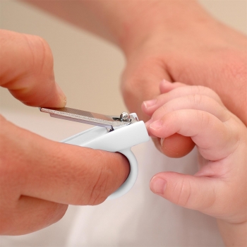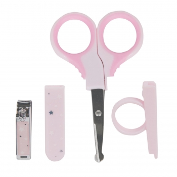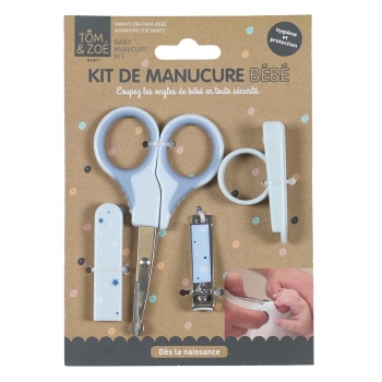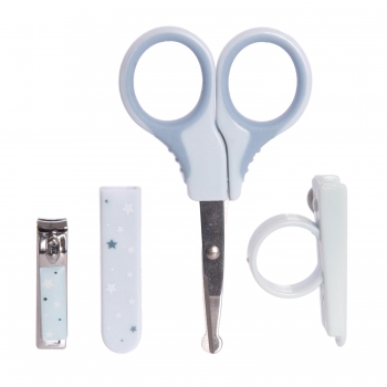 Coupez les ongles de bébé en toute sécurité avec ce kit. Il contient un coupe-ongles aux bords coupants et incurvés avec son support de protection. une paire de ciseaux à bouts ronds avec son étui de protection.
