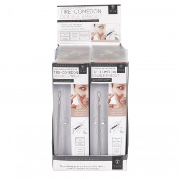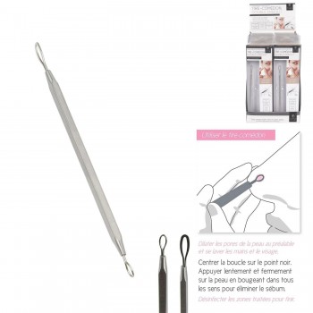 Nettoyez votre peau, choisissez l'extrémité la plus appropriée en fonction de la taille de l'imperfection visée, placez l'extrémité du tire-comédons autour de celle-ci et exercez une pression pour l'extraire.