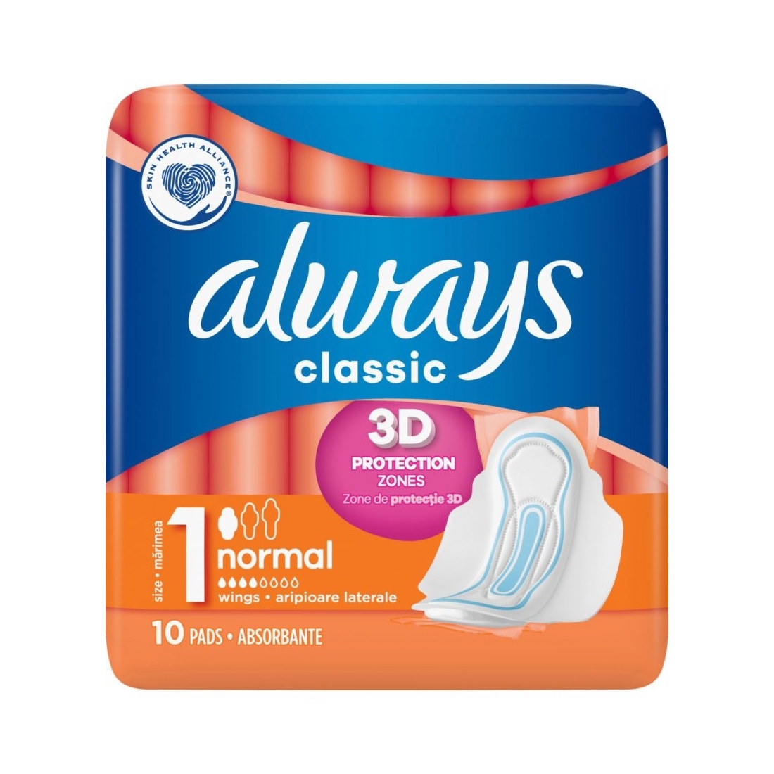 Serviette Hygiénique de jour Classique avec Ailettes - taille 1 - flux normal - 10 pcs